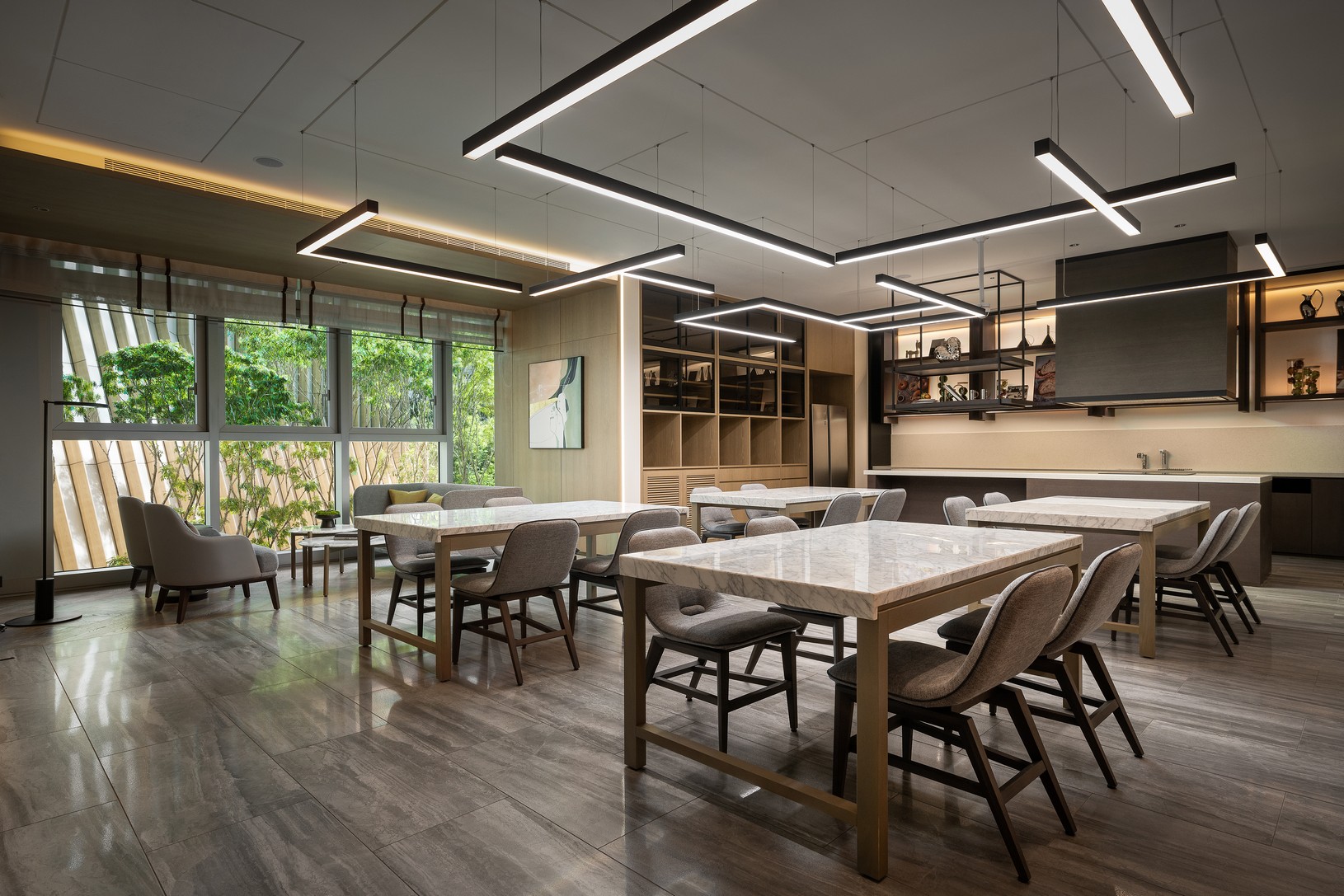 匯僑於本案中展現卓越的資源整合能力與精準的控管應變力,周全統整多團隊、多樓層協作的關鍵規劃,確保施工流程順暢銜接。在嚴謹的專業模式下,團隊不僅高效完成工程進度,更有效控管材料與人力資源的運用。最終,歷經十年延宕的營建工程得以於短期內完成高品質內裝,呈現兼具美學與機能的公共空間。從統籌到執行,我們以高度的掌控力與應變力,實踐對品質與美學的承諾。
